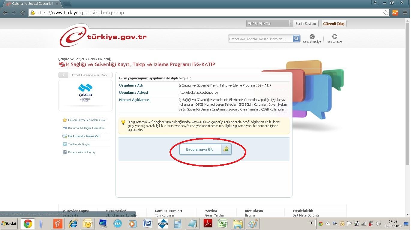 Hizmete tıklayınca uygulama bilgisi ekrana gelecektir. Buradan uygulamaya git düğmesine basınız.